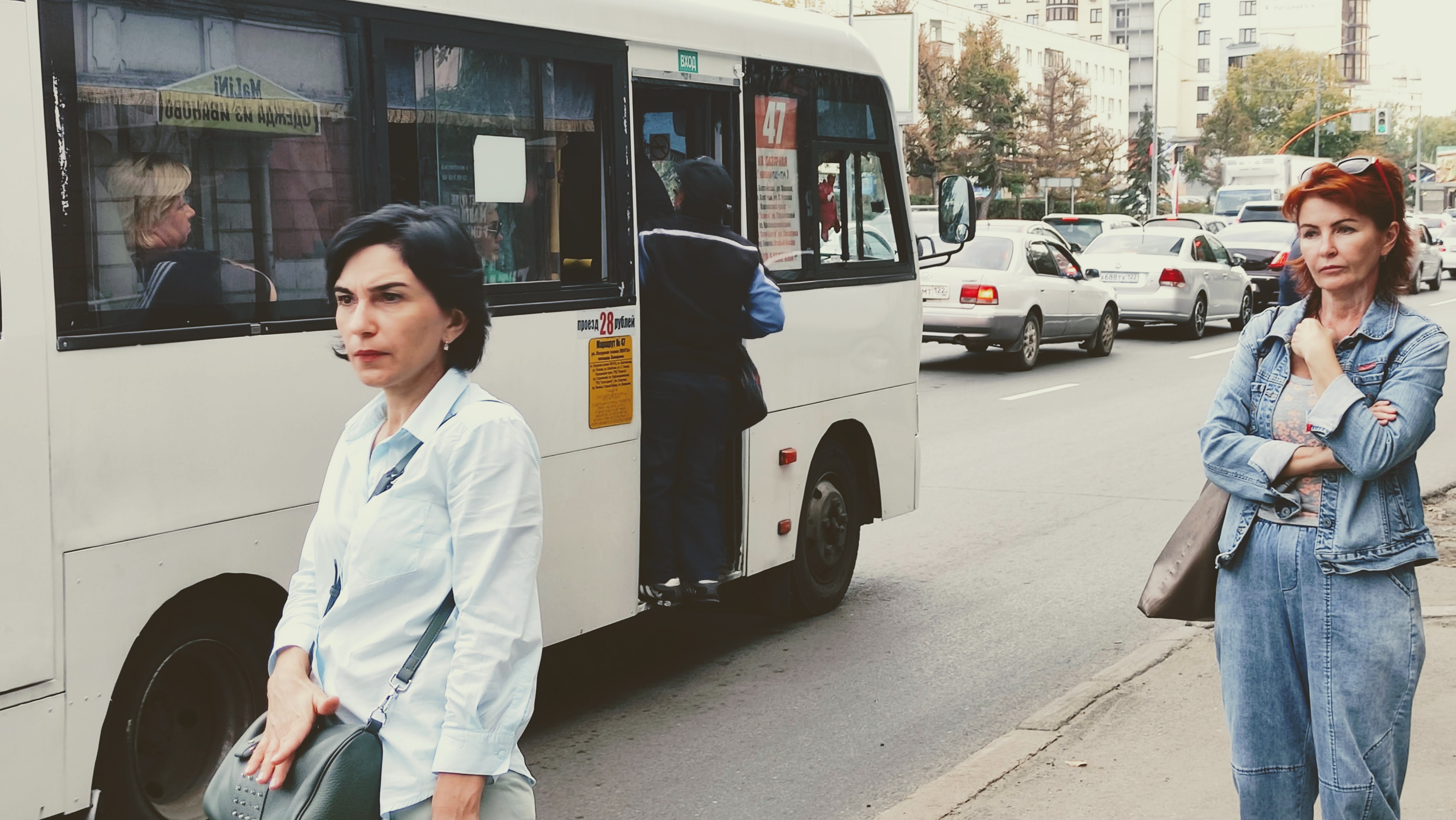 Автобус Машина Одежда Джинсы Женщина